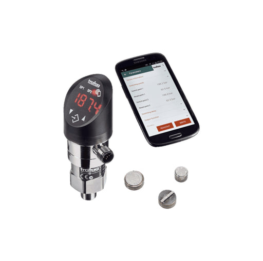 El Presostato electrónico NAT 8252 Trafag es un sensor industrial con rango 0…10 bar, salidas PNP y celda thin-film-on-steel de al...